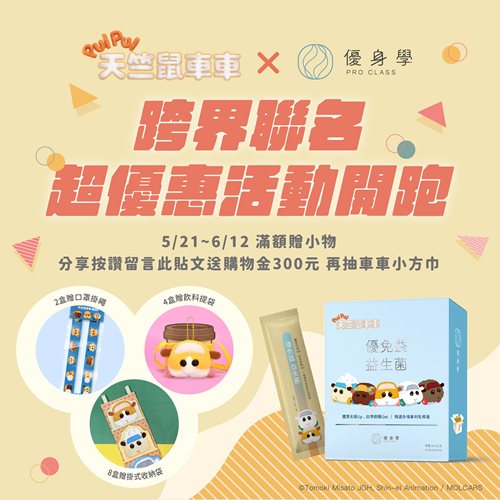 分享优身学FB粉专贴文加码送官网购物金300元、再抽车车小物,活动只到6/12 (日) 23:59!