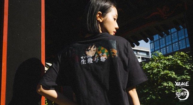 This series features a variety of haori and chic small bags, with a delicate touch of details inspired by Tanjiro’s “ichimatsu moyo” pattern and Nezuko’s “asanoha” pattern. Furthermore, new tees with brand-new portraits and Yojijukugo embroidery are part of this limited release!