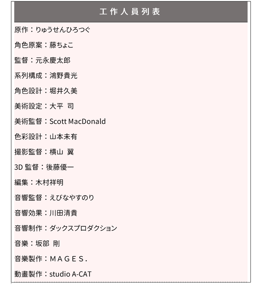 女主角米菈是由出演《三坪房間的侵略者!?》中「虹野由莉佳」一角的聲優大森日雅擔任,她甜膩柔和、令人耳朵融化的聲線一直深受粉絲們的好評。配角部分也集結了許多知名聲優助陣,除了有擔任《入間同學入魔了!》男主角的聲優村瀨步和近期爆紅的《國王排名》主角「波吉」的日向未南外,還有資歷豐富的堀江由衣和佐倉綾音…等超人氣聲優。