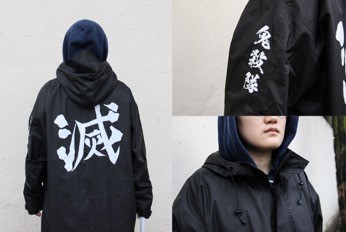 鬼滅之刃桌緣公仔 台灣首發新品 齊聚鬼滅之刃華山快閃店 長版連帽鬼殺隊滅字防潑水風衣