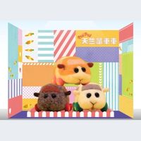 天竺鼠車車快閃店全店以繽紛色系設計,搭配場內遊戲區「限定彈珠台」打造歡樂童趣樂園感,遊戲過關能把更多天竺鼠商品帶回家;兩米高的巨型「天竺鼠車車-馬鈴薯」氣偶,以特殊毛料製作,蓬鬆軟萌鼠粉必拍;全新設計「巨型扭蛋機」機身佈滿天竺鼠車車動畫經典場景,一扭 300 元不只可以扭蛋拿週邊,還能合影拍照發限動;馬鈴薯、西羅摩和泰迪的大型絨毛玩偶齊聚「繽紛絨毛派對間」;趣味遊戲區設有拍照背景「閃亮胡蘿蔔」快來模仿天竺鼠車車們閃亮發光的超萌表情;這次也有 CP 值最高的拍貼機和姓名貼機,千萬不容錯過。
