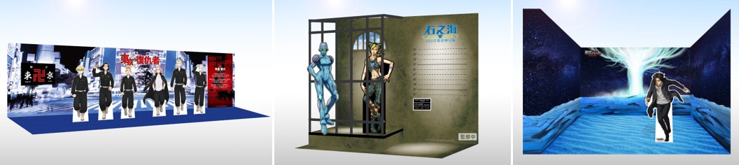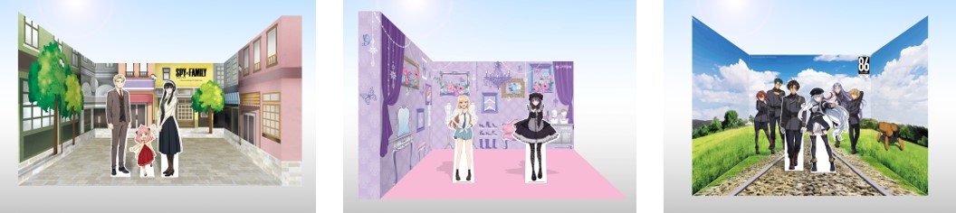 來到活動現場,絕不可以錯過與心愛角色合影的機會,首推《SPY×FAMILY間諜家家酒》合影區,一家三口輕鬆的造型登場,可愛的安妮亞抱著最喜歡的娃娃「奇美拉」,還有穿上休閒套裝的「洛伊德」與「約兒」,首次出現的造型絕對要多拍幾張!還有《戀上換裝娃娃》合影區唯美更衣室內學生制服的海夢與經典小雫Cos同時現身,夢幻場景心動登場!《86不存在的戰區》講述歷經戰火史詩般的壯烈故事,合影區感動集結了一起作戰的羈絆角色們。《進擊的巨人》重現動畫場景兄弟二人第一次接觸後進入的「道路」交會座標。巨人迷必拍場景!《JOJO的奇妙冒險 石之海》打造氣勢十足的監獄主題場景,讓民眾可以輕鬆融入JOJO的世界裡。以及近期公布即將於秋季登場的《PUIPUI天竺鼠車車 新系列》2米高的馬鈴薯大型氣偶移師台中,快來一起搭上車車熱潮,還有《鬼滅之刃》雙造景、《刀劍神域》、《RE:從零開始的異世界生活》、《東京復仇者》、《關於我轉生變成史萊姆這檔事》等等的熱作造景區,超豐富的展出內容免費拍個夠!