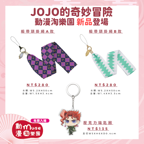 紅包想好怎麼花了嗎?風格強烈的《JOJO 奇妙冒險》推出了緞帶頸掛繩,使用角色形象作為設計,附有經典掛飾,掛上讓你展現滿滿的「JOJO 魂」!接著推薦《關於我轉生變成史萊姆這檔 事》,都會風包包系列一次推出,從零錢包到後背包共 4 款,低調的設計受到廣大的好評,細節就 藏在皮革吊牌以及皮革片上,都有印上淺淺的「史萊姆」圖案,在拉鍊上也是可愛的「史萊姆」 造型,讓人充滿驚喜的都會包系列,現貨首發就在現場等你呦!