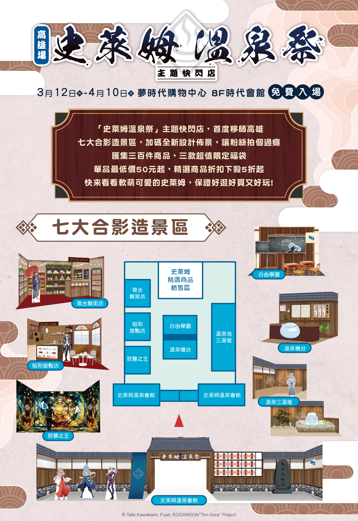 「史萊姆溫泉祭」主題快閃店,首度移師高雄,七大合影造景區,加碼全新設計佈景,讓粉絲拍個過癮,貨及三百件商品,三款超值限定福袋,單品最低價50元起,精選商品折扣下殺5折起,快來看看軟萌可愛的史萊姆,保證好逛好買又好玩~