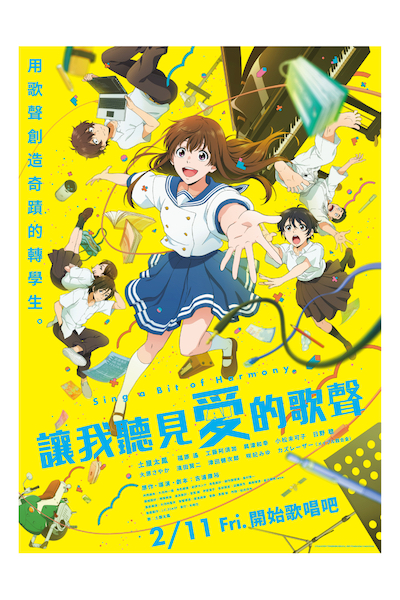 今年寒假,也將為動漫迷帶來充滿感動的青春校園音樂電影《讓我聽見愛的歌聲》描述神秘轉學生「詩音」,試圖用唱歌串起人與人之間的聯繫,讓珍惜的人獲得幸福,電影將在 2 月 11 日上映, 電影預售票只在台北動漫節,木棉花攤位外服務台獨家販售,凡是購買單張《讓我聽見愛的歌聲》 預售票,就隨票贈送一張電影主視覺海報,喜愛音樂與校園題材的觀眾,不妨持續關注台北動漫節與電影上映的最新消息。