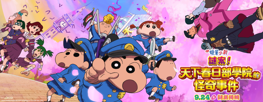 日本歡樂國民動畫《蠟筆小新》以童趣又百變的人物與故事,每年都為台灣觀眾帶來不同主題的電影,繼去年的塗鴉王國受到熱烈好評之後,今年的《蠟筆小新:謎案!天下春日部學院的怪奇事件》推出「正宗」懸疑推理主題,企圖翻轉觀眾對蠟筆小新的既定印象,今年由叫好叫座的《蠟筆小新電影:大對決!機器人爸爸的反擊》導演「高橋涉」執導,更首次在台灣同步推出國語配音與日語原音雙語版本,日文版聲優由日本各界知名藝人仲里依紗、不破醬、巧克力星球等共同參與,期待帶給台灣觀眾充滿歡樂與笑聲的電影時光。